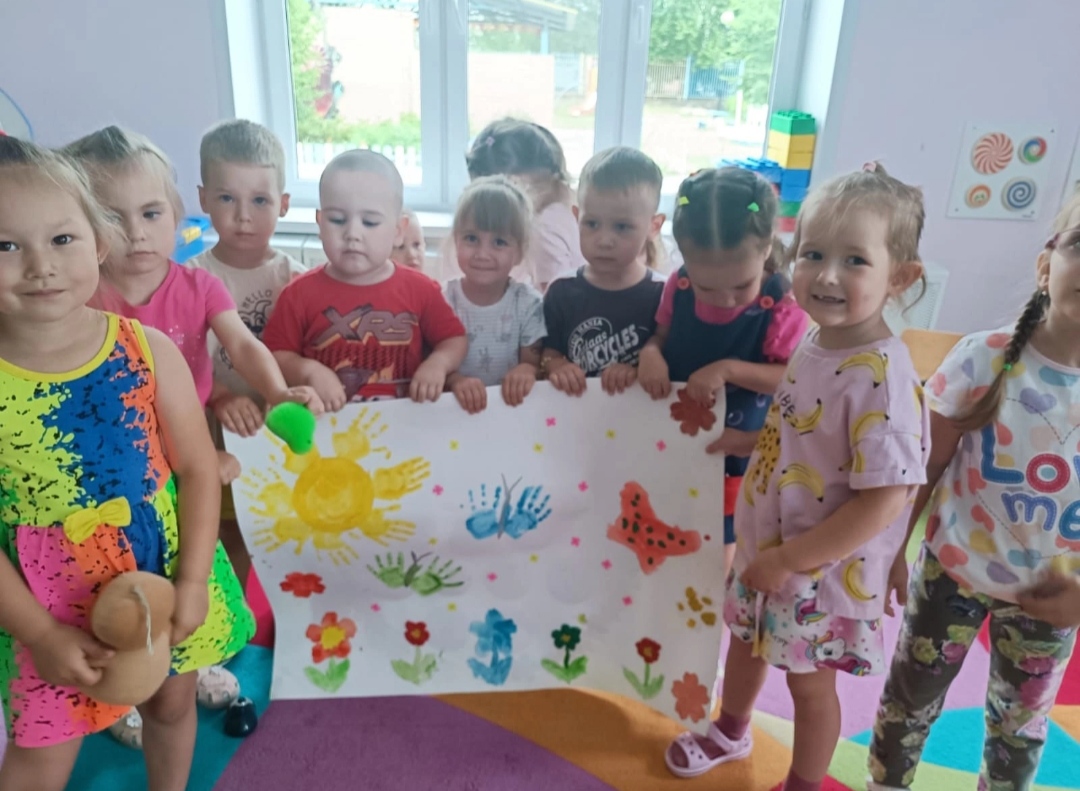 Коллективная работа "Летняя поляна" в исполнении воспитанников группы 5 под руководством Резеды Ильгизовны. Получилось очень красиво. Молодцы ????????????