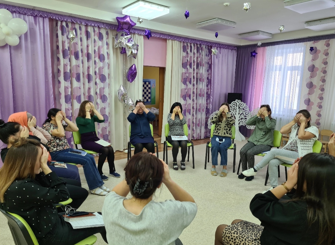 Педагог-психолог Юлия Александровна провела семинар с педагогами детского сада с элементами тренинга по самопощи. Где показала и проделала с воспитателями приёмы по саморегуляции и провела профилактику самовыгорания у педагогов.