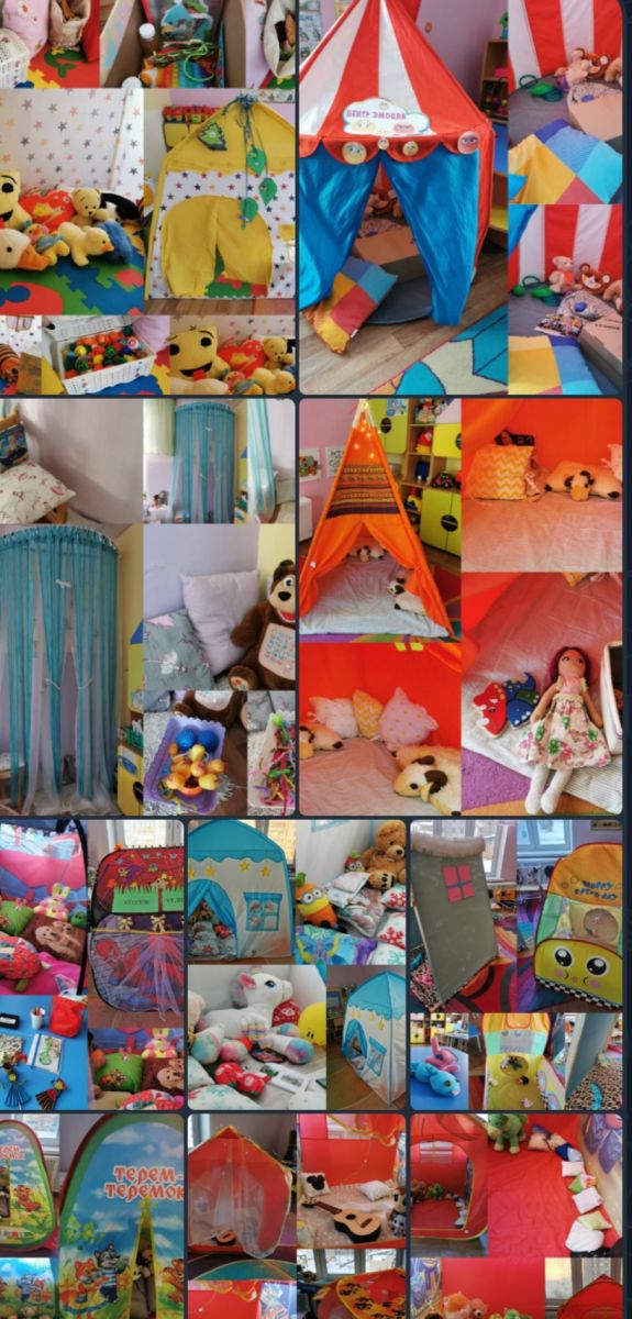 Группы детского сада приняли активное участие в приготовлении уголков. Уголки получились в виде палаток, вигвам, шалаша, круглого карниза со шторами - чего только не придумали наши мамы и папы совместно с воспитателями. Наполнение также удивило своей необычностью: подушки своими руками, тактильные мешочки, игрушки, бутылочки с блёстками, альбомы с фотографиями, сухие бассейны из крышек для ручек, коробки-кричалки, массажные мячики, коврики-пазлы, коврики для массажа ножек. Дети очень заинтересовались уголками и будут продолжать использовать их. Комиссия определила наших победителей :