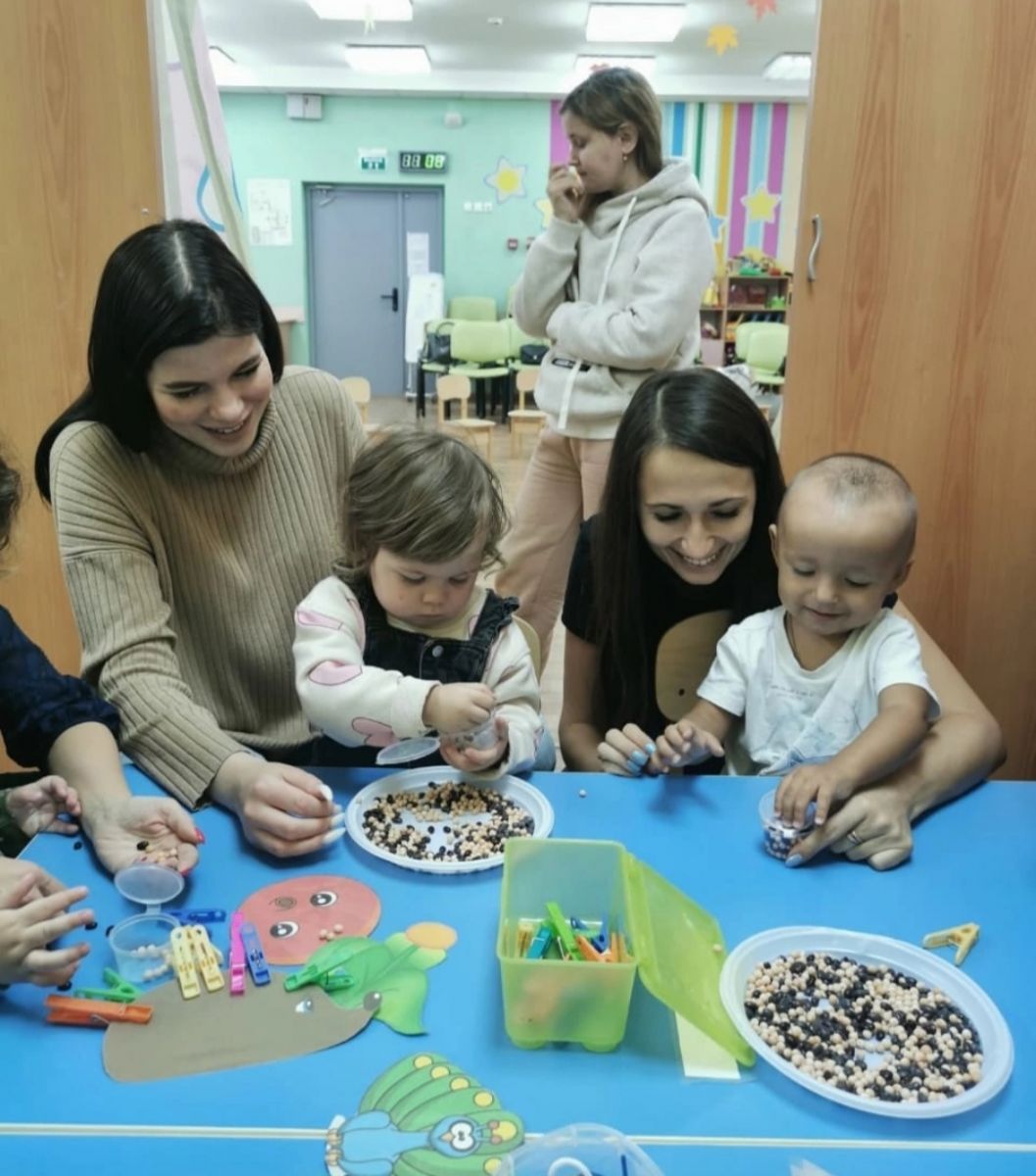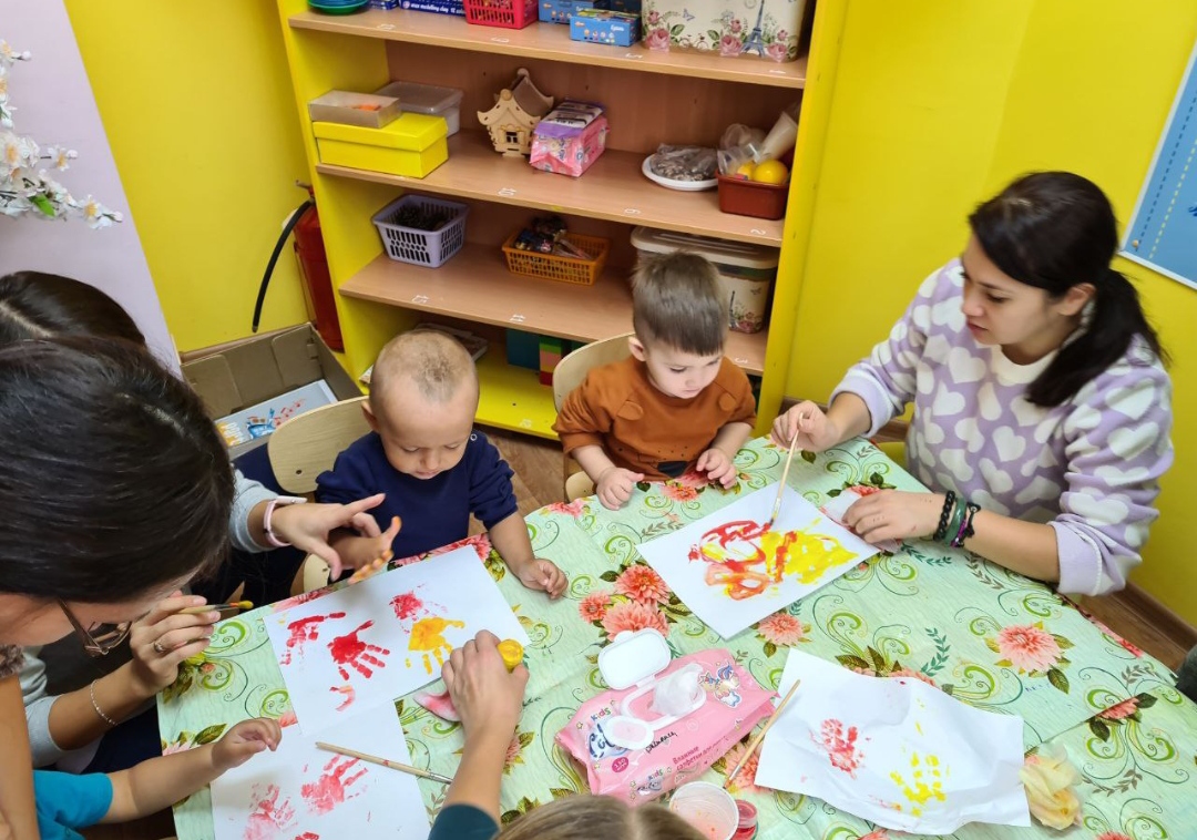 Сегодня прошло первое занятие группы "Вместе с мамой" с нашими малышами. На занятии присутствовали самые маленькие Звёздочки, от 1,5 лет и их мамы. В начале занятия игры с детьми были направлены на сплочение группы, на создание положительного климата, настроя среди детей и мам. После чего малыши совместно с мамами занимались творческой деятельностью, а именно нетрадиционным рисованием - рисованием ладошками. Детские ладошки превратились в разноцветные осенние листочки. В конце занятия дети вместе с родителями погрузились в свободную двигательную деятельность. Инновация в наших занятиях - это использование элементов методики Монтессори, где дети сами выбирают деятельность для себя, а мама и педагог только следуют и помогают малышу.