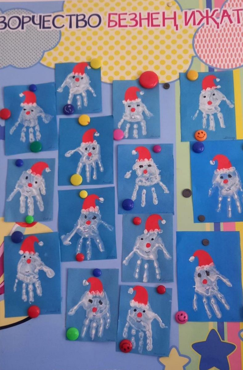 Нетрадиционная техника рисования ладошкой с элементами аппликации. Таких милых снеговиков нарисовали сегодня воспитанники группы 12 под руководством воспитателя Ирины Владимировны