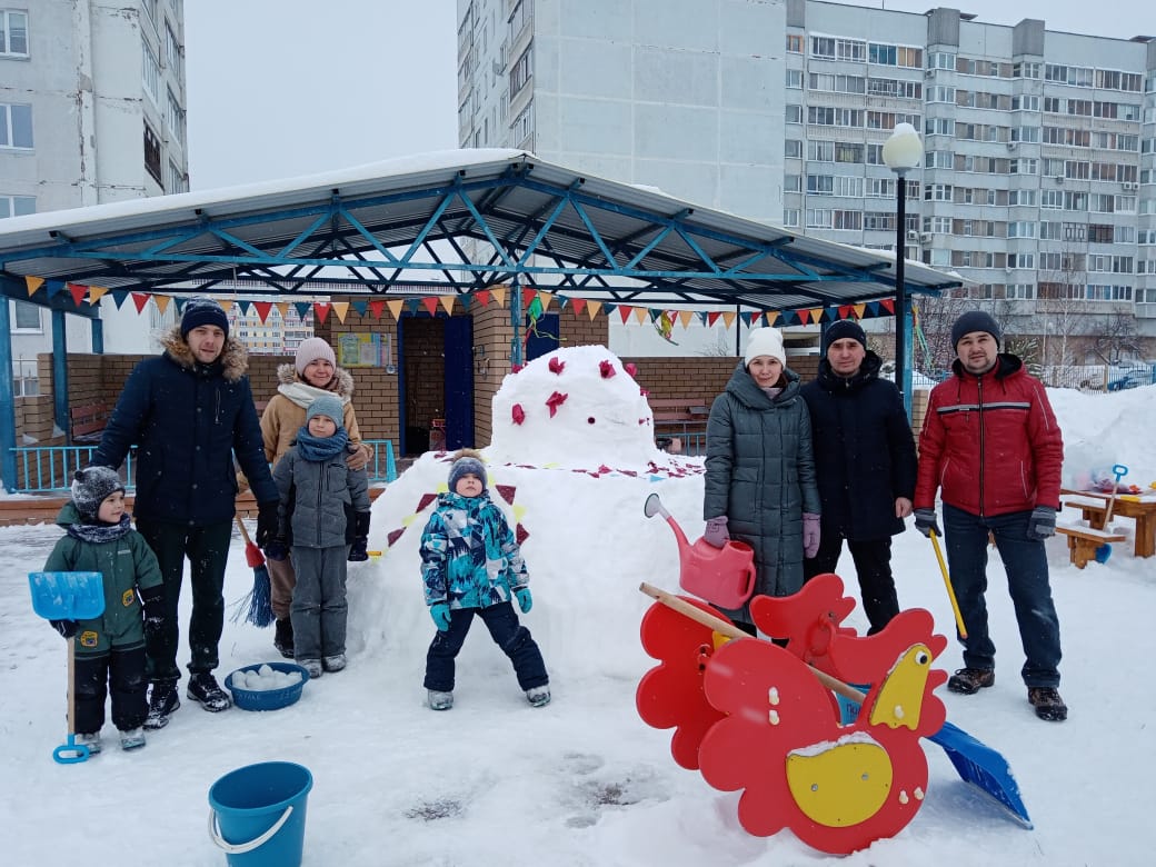 Фотоотчёт снежных скульптур, созданных в результате совместной деятельности педагогов, воспитанников сада и их родителей, можно посмотреть здесь