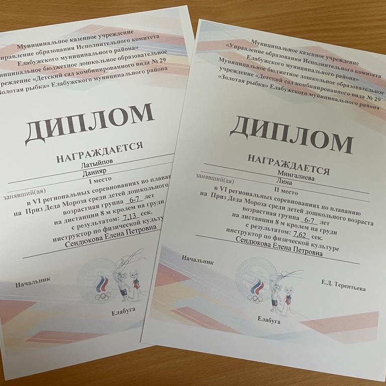 И снова в копилке достижений наших воспитанников - очередная победа. На VI региональных лично-командных соревнованиях по плаванию на приз Деда Мороза среди детей дошкольного возраста воспитанники группы 8 Латыйпов Данияр (1 место) и Мингалиева Лина (2 место) стали лучшими из лучших. Поздравляем наших юных пловцов и желаем дальнейших успехов! -