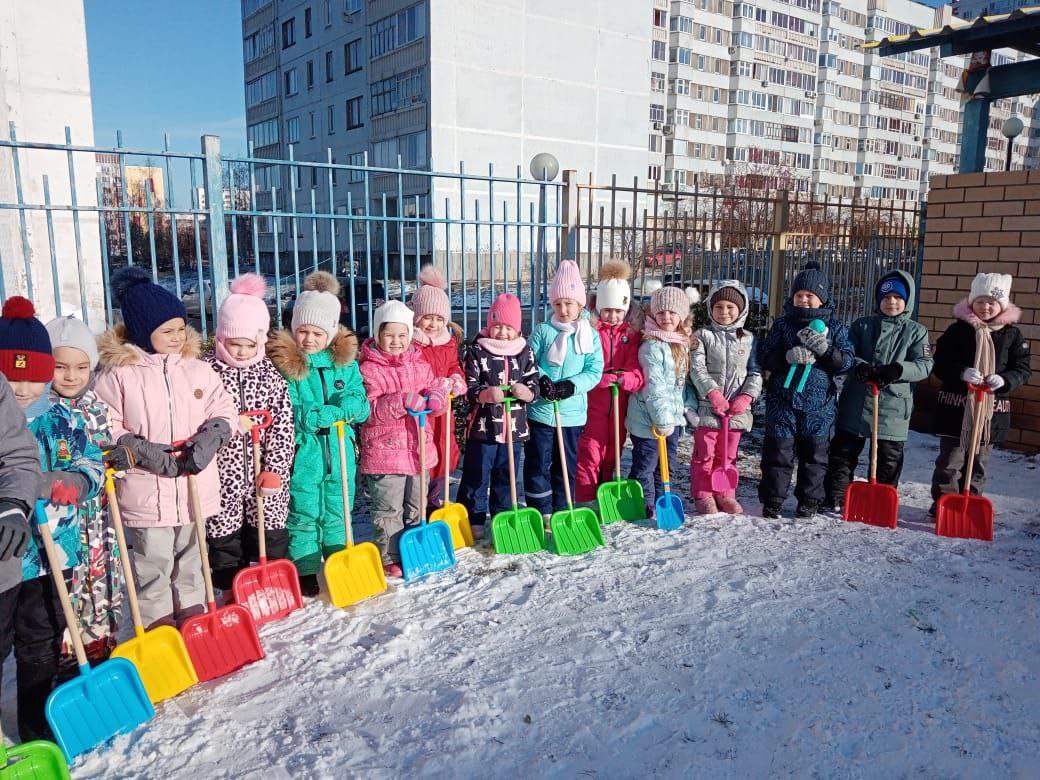 Девочки и мальчики из группы № 13 очень хотели помочь воспитателю в уборке снега. Трудились они на славу.