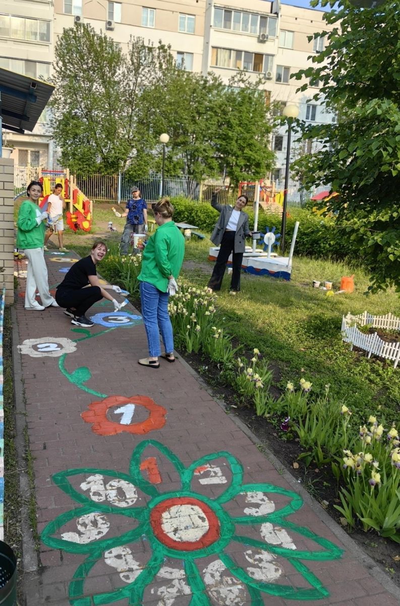 Родители группы 9 приняли активное участие в покраске кораблика и рисунков на асфальте