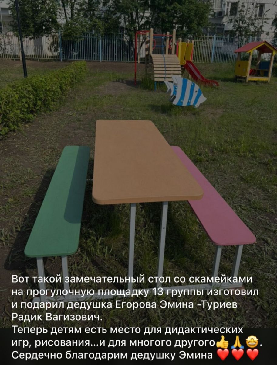 Летом дети большую часть времени проводят на улице, поэтому выносное оборудование на площадке группы 11 отвечает их интересам, соответствует возрасту и доступен каждому ребенку.