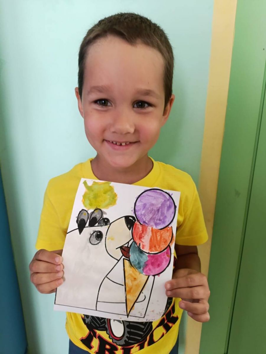 ✂️Забавная аппликация: весёлый мишка с огромным рожком мороженого.