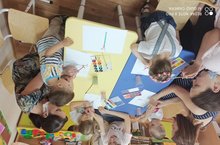 Очередное занятие группы с неорганизованными детьми было посвящено самому прекрасному времени года, до наступления которого остались считанные денечки - солнечному и теплому лету! Отправившись в необычное путешествие на волшебном паровозике, малыши помогли лесным жителям найти правильную дорогу, построили для них верный маршрут из необычных камушков, нарисовали необычным способом много разноцветных цветочков, попрыгали, поиграли, в общем и детки, и мамы остались довольны!