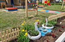 С большим удовольствием на нашу просьбу прийти к нам в сад откликнулся тимуровский отряд школы № 60, во главе с руководителем Трубниковой Светланой Васильевной. Дети, взяв ребят группы № 10, приняли участие в облагораживании спортивного участка для малышей. Познакомив ребят со своим движение, они личным примером показали, что работать командой – это здорово и весело. Все дружно под музыку дети убирали сорняки, поливали цветы, рыхлили почву. Помогли расставить спортивный инвентарь, чтобы организовать эстафету. Так весело и непринужденно пролетело время, и наш участок стал поистине благородным. Получилось особое «экопространство», где дети не только могут заниматься спортом, но и просто безопасно играть, отдыхать, ходить босиком и сами организовывать игры.