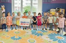 В преддверии празднования праздника " День России" в группе номер 1 прошло занятие по художественно - эстетическому развитию с использованием нетрадиционной техники рисования (ладошками) "Российский флаг".