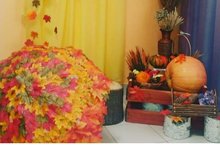 Тематическая фотозона "Подарки осени" разместилась в холле второго этажа. Наши творческие педагоги Сейлан Рашитовна, Разида Гаязовна, Фируза Рафисовна, Марина Андреевна очень постарались, чтобы создать необыкновенно яркий уголок для весёлых фотосессий детей и взрослых. Выражаем слова благодарности родителям воспитанников, которые предоставили "вкусные и полезные" атрибуты для оформления нашей осенней фотозоны.