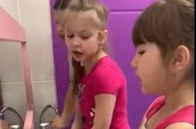 Организация гигиенических процедур сегодня как никогда очень актуальная тема. И проводятся они постепенно, небольшими группами детей. Следует напомнить дошкольникам правила поведения в умывальной комнате — они не должны разбрызгивать воду, должны поддерживать порядок и чистоту, после мытья рук сразу же закрывать воду и ни в коем случае не оставлять краны открытыми. Необходимо обратить внимание и на действия детей — они должны закатать рукава, намыливать руки и выполнять прочие процедуры над раковиной. Дети должны знать, что пользоваться можно только своим полотенцем, а после процедуры умывания нужно аккуратно вешать его на своё место. Данные процедуры должны проводиться в спокойной, доброжелательной обстановке, что обеспечит хорошее настроение малышам во время приёма пищи. Посмотрите как проходит мытье рук в нашем детском саду.