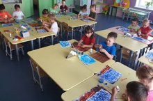 Ребята нарисовали каждый свое море, сделали золотую рыбку, загадали желание и выпустили рыбку в море. -