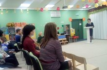 Своим опытом работы поделилась музыкальный руководитель детского сада "Фиалка", с 40-летним стажем работы в сфере дошкольного образования Скорикова Найля Марсовна. Так как ФГОС предполагает использование новых форм работы с родителями, позволяющий вовлечь их в процесс обучения, развития и познания собственного ребёнка, родители воспитанников и дети группы N13 стали активными участниками данного мероприятия.