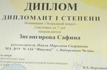 Сегодня 18 февраля воспитанница нашего детского сада Зигангирова Сафина была награждена дипломом 1 степени за победу в открытом Всероссийском вокальном фестивале - конкурсе "Чулман тургае Жаворонок Закамья".