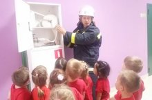 В рамках региональной инновационной площадки по теме "Раннее профориетирование" с нового учебного года был внедрен проект по изучению различных профессий. Сегодня группу N5 посетил пожарный. Детям рассказали о профессии пожарного, значимости его труда и опасности в его работе под руководством воспитателя Гизатуллиной Фирузы Рафисовны.
