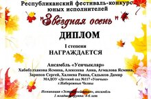 Музыкальный руководитель, Лариса Илдаровна и ансамбль "Уенчыклар" победили в республиканском фестивале-конкурсе юных исполнителей "Звездная осень". Поздравляем и желаем дальнейших творческих успехов!
