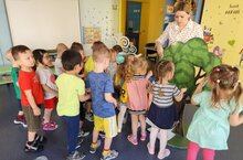 Дети подготовительной группы №6 показали экологическую сказку о правилах поведения в лесу "Теремок" для младших групп.