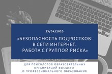 Семинар для психологов "Безопасность подростков в сети Интернет, работа с группами риска." 23.04.2020