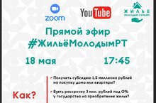 18 мая для молодых семей пройдет прямой эфир #ЖильеМолодымРТ в формате видеоконференции по вопросу представления жилищной субсидии в рамках программы «Обеспечение жильем молодых семей» федеральной целевой программы «Жилище».