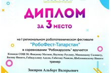 На I региональном робототехническом фестивале «РобоФест — Татарстан» команда нашей школы в составе Фандеев Матвей,