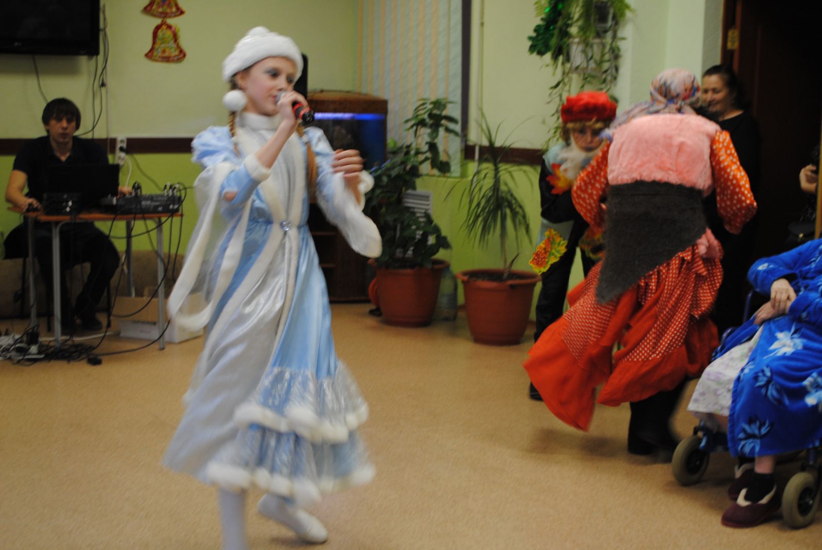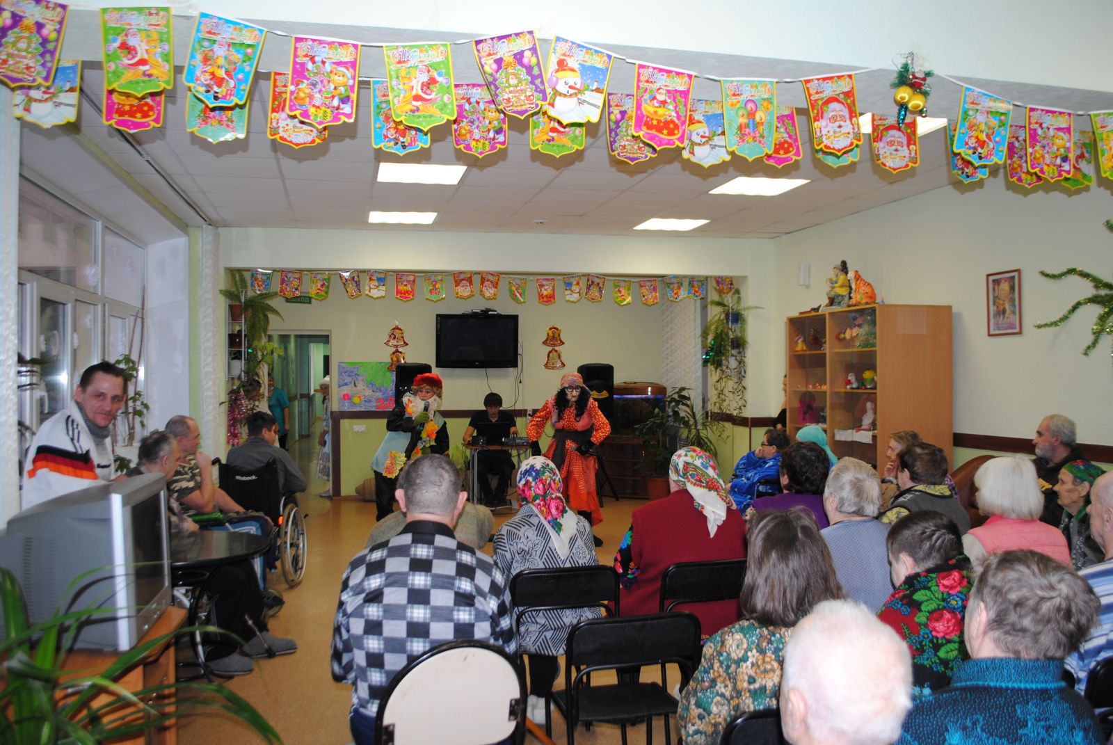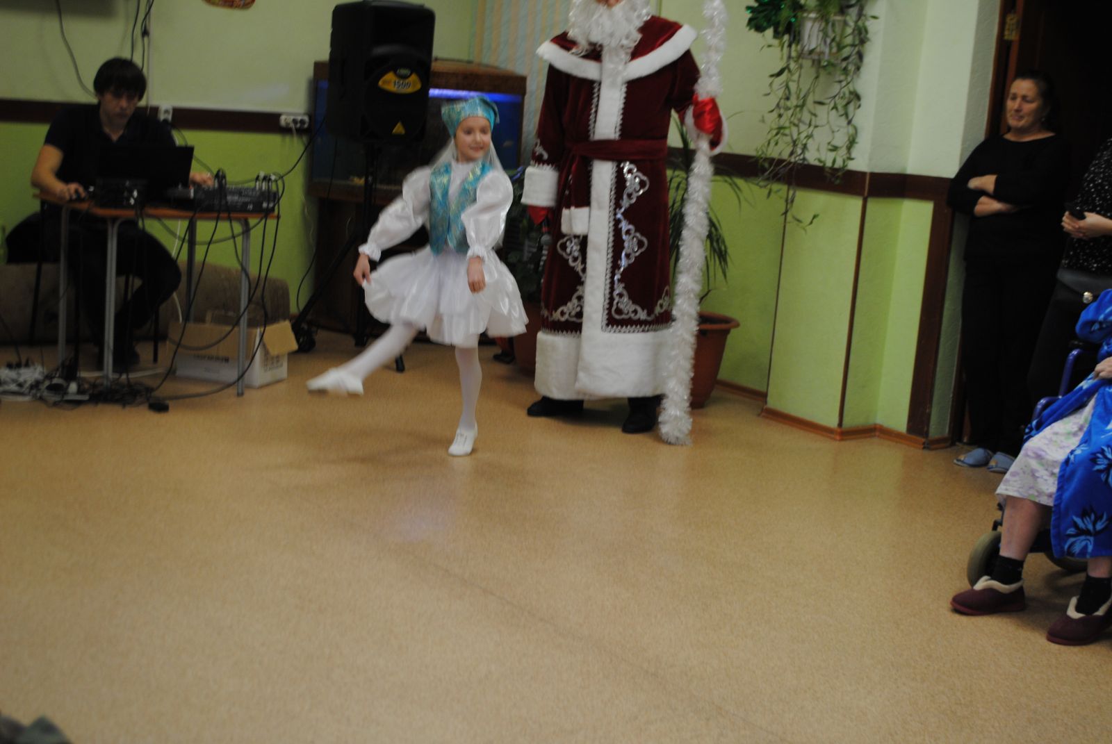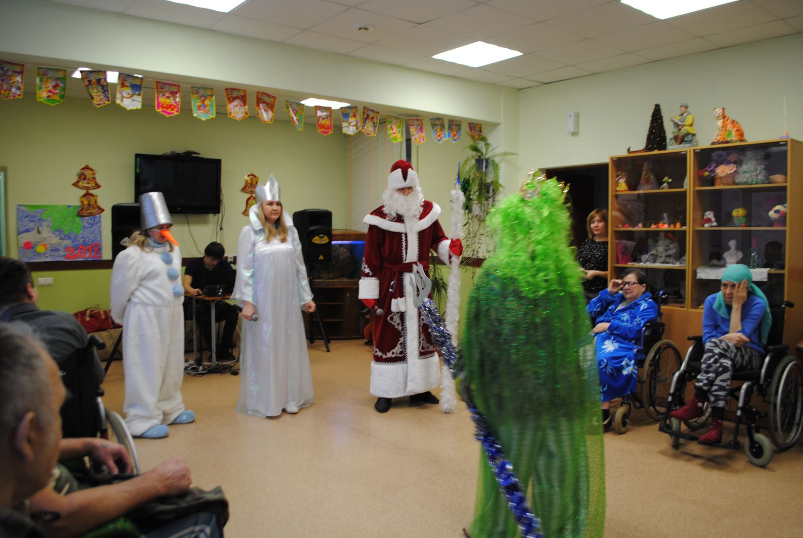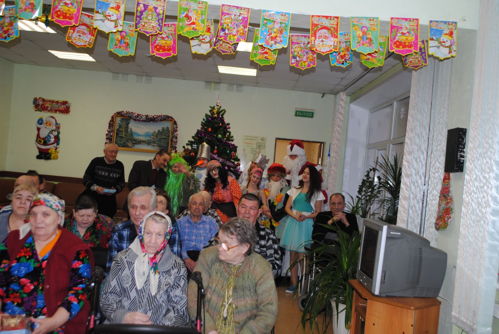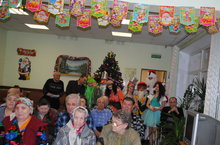 Жители дома-интерната всегда ждут нас и тепло принимают. А уж мы изо всех сил стараемся доставить им радость, внимание, заботу. Мы пели песни, танцевали вместе с бабушками и дедушками. И, конечно же, устроили небольшое сказочное шоу. Куда ж без Бабы Яги и Лешего, Снежной королевы. В конце праздника пришел Дедушка Мороз и все встало на свои места, наступил Новый год и все получили подарки. Пусть небольшие, но важно –то внимание! И от этого радостно стало у всех на сердце!