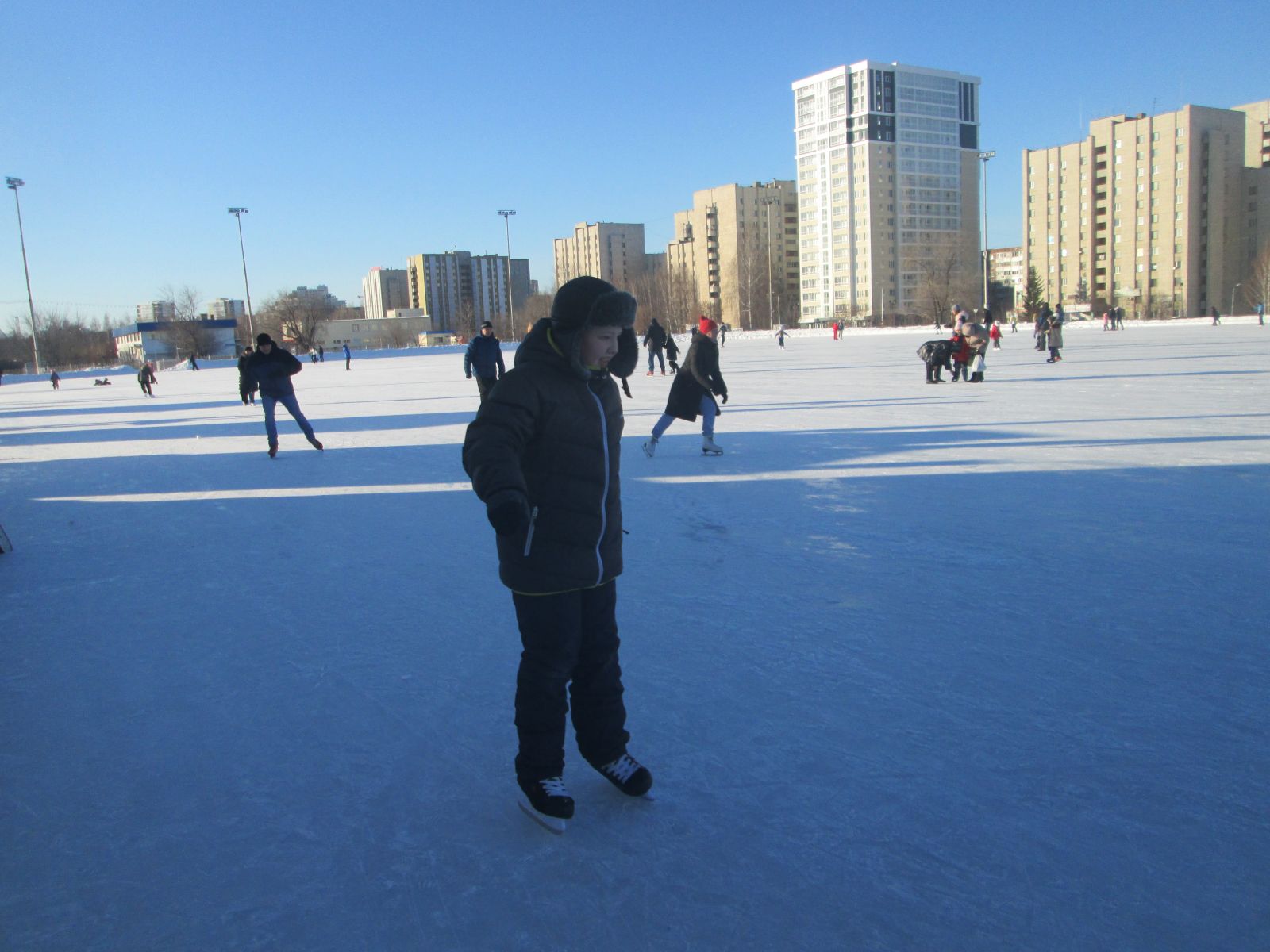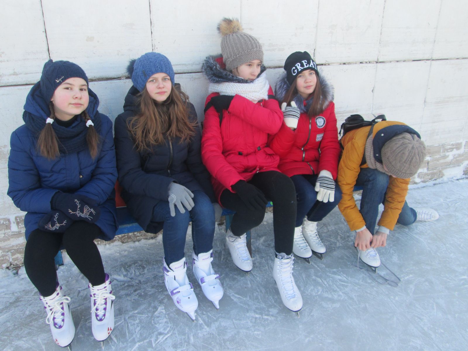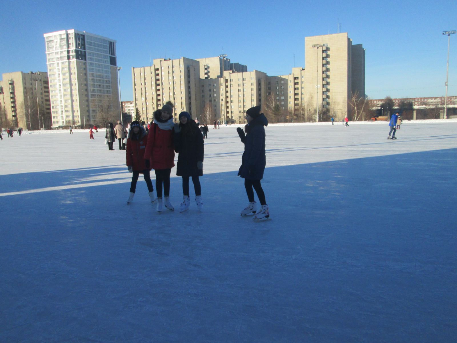 Мы их учили кататься на коньках. А кто не умеет стоять на коньках, катались с горки.