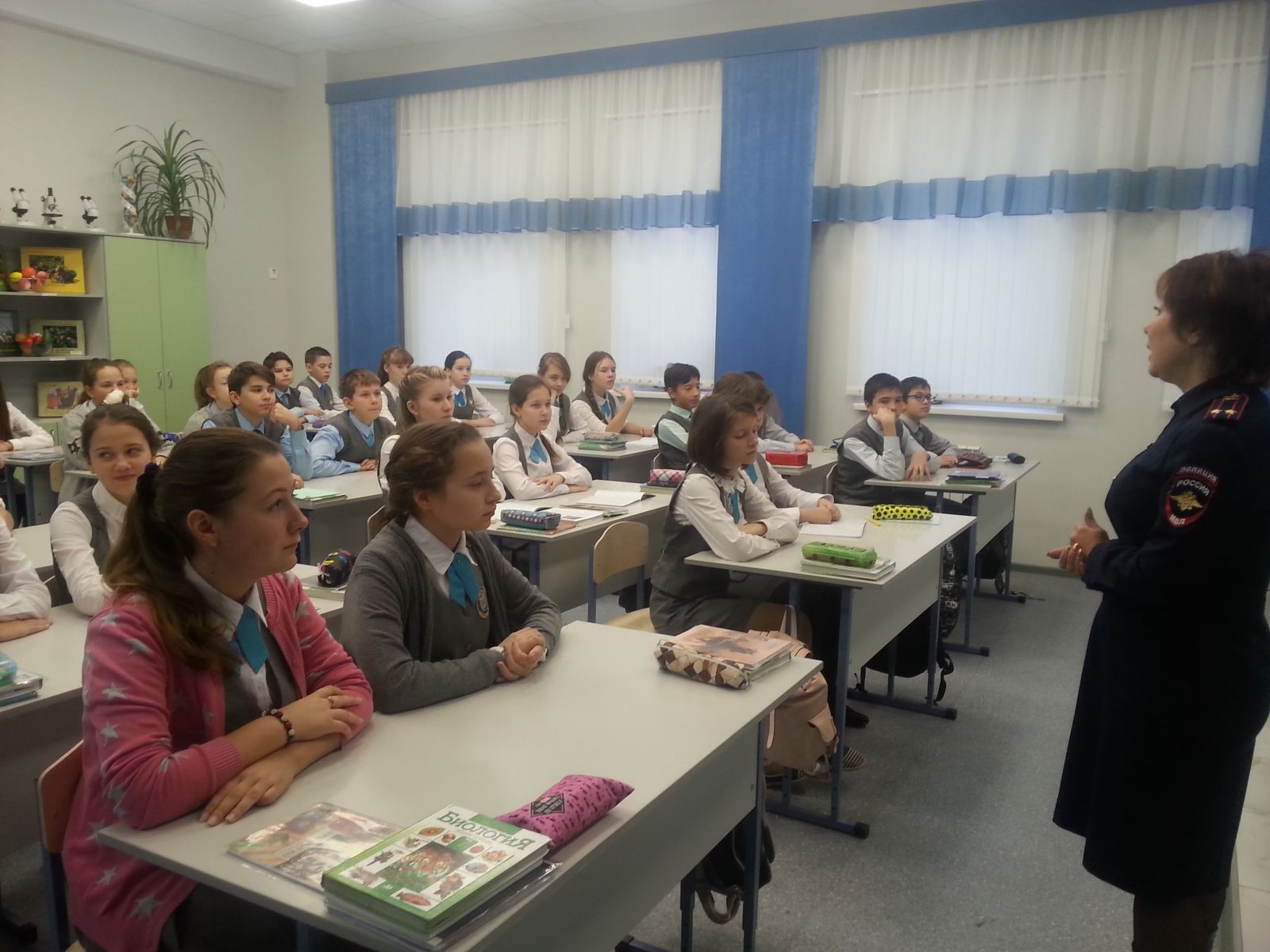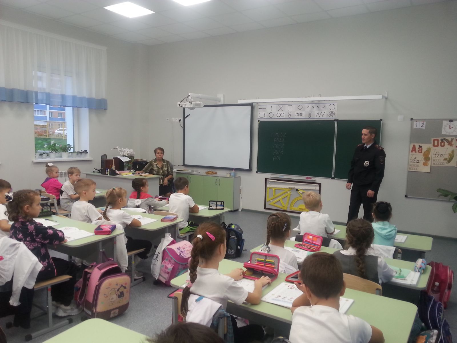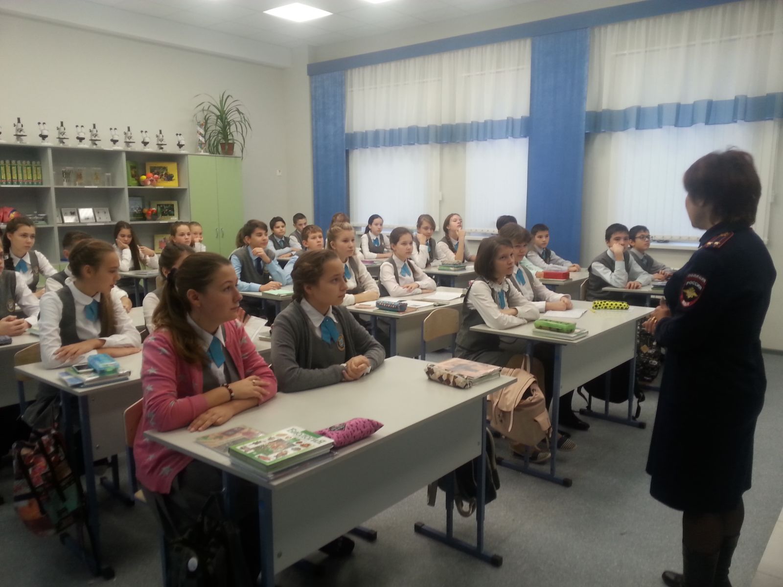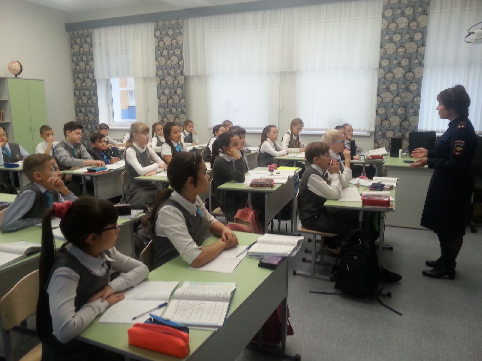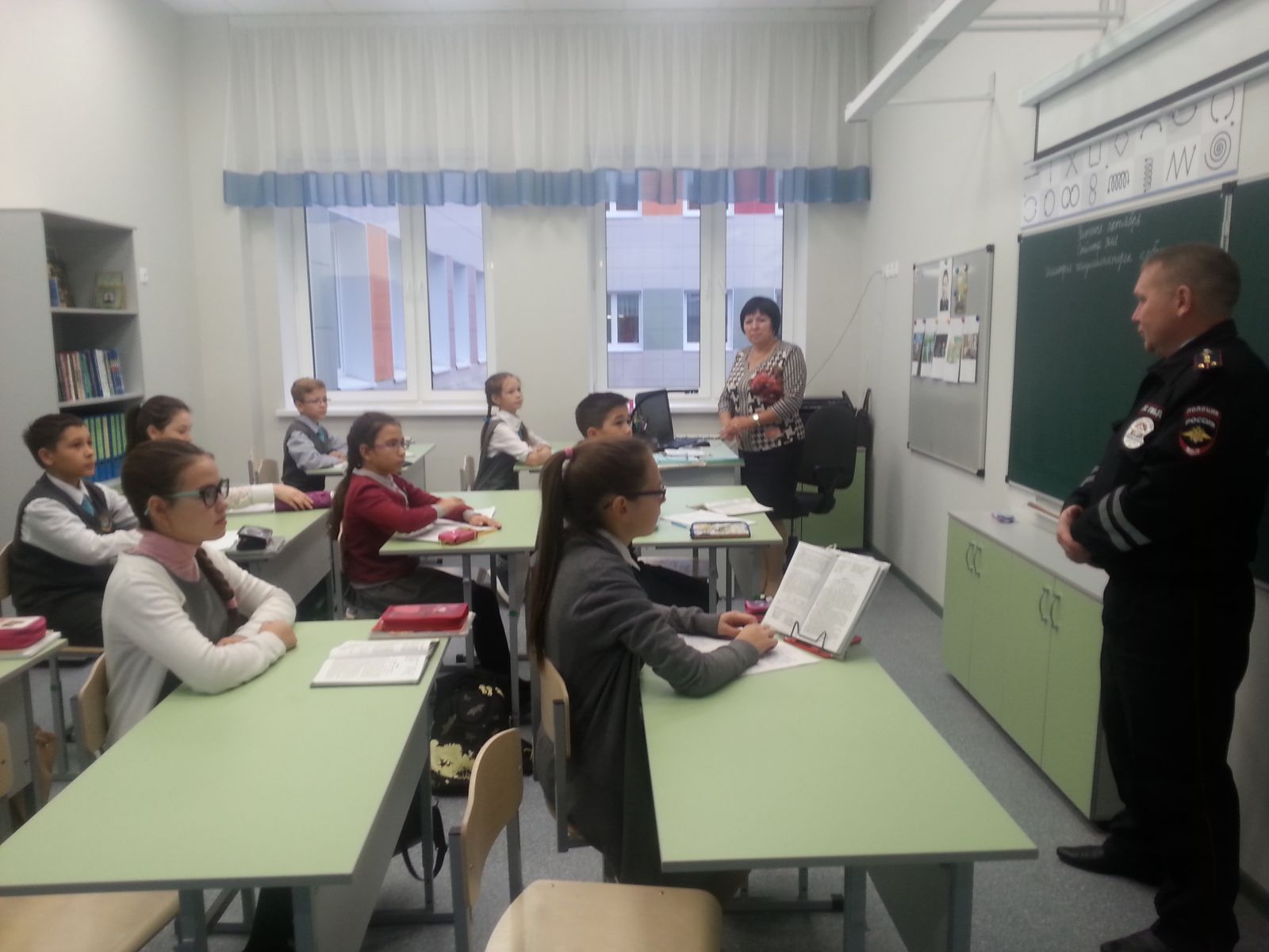 В школе прошла встреча с инспекторами ГИБДД. Они провели детям лекции о правилах безопасности дорожного движения.