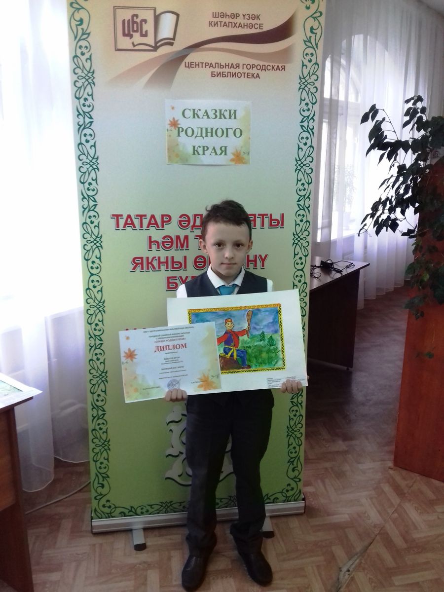 18 октября в «Центральной библиотечной системе» состоялось церемония награждения городского семейного конкурса рисунков с элементами аппликации «Сказки родного края». Ученики 4 А класса приняли активное участие в данном конкурсе и заняли почётные места: Амосов Артур – I место, Сабирова Аделина – III место. Руководитель данного конкурса, учитель татарского языка и литературы Миникаева Л.Р., награждена благодарственным письмом за подготовку участников к конкурсу и за активное участие в жизни МБУ ЦБС.
