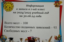 Информация о записи в первый класс на 2024/2025 учебный год.