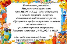 о начале занятий в студии дошкольной подготовки "Ариель"