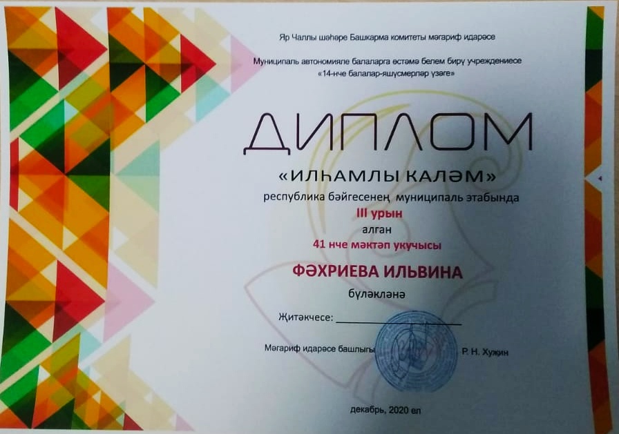 Республикакүләм “Илһамлы каләм” бәйгесенең муниципаль этабы нәтиҗәләре билгеле булды. Әлеге бәйгедә дә мәктәбебез укучылары сынатмадылар: