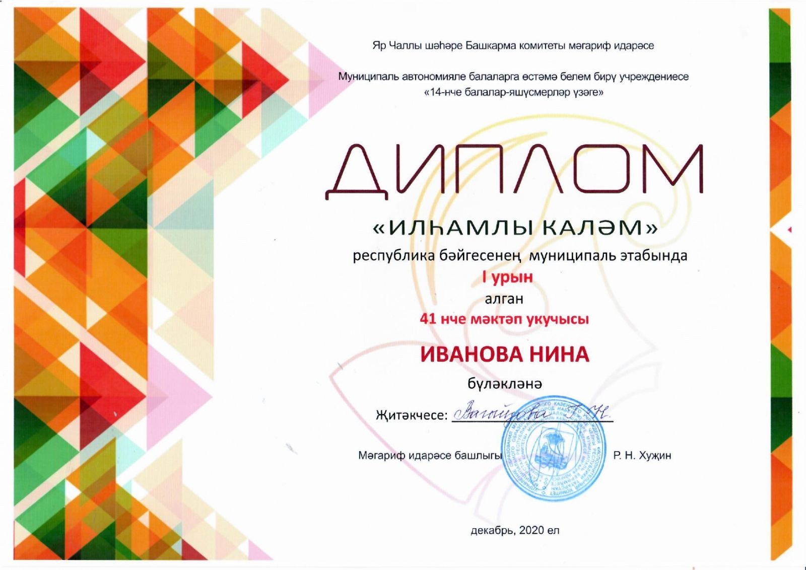 Иванова Нина – I урынны яулады ( җитәкчесе: Вагыйзова Г.Н.).