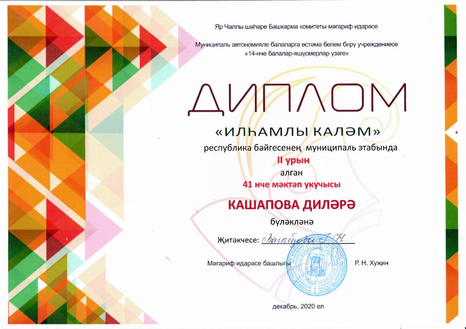Кашапова Диләрә –II урынга лаек булды ( җитәкчесе: Вагыйзова Г.Н.).