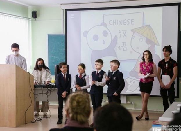 Путешествие началось с Германии, затем гости и участники многонационального праздника побывали в Англии, Китае, Туркменистане, России и Татарстане. Особенно большой успех имели творческие номера учащихся лингвистического класса школы № 41, представивших блок китайского языка.