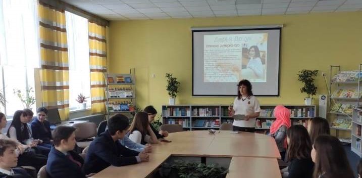 12 марта в библиотеке СОШ № 41 состоялся диспут «История о границе между реальным и воображаемым» по книге Дарьи Доцук «Поход к двум водопадам», приуроченный Неделе детской книги. Обсуждение провели учителя русского языка и литературы Ушакова Г.Г., Корнилова С.С. совместно с сотрудником библиотеки-филиала № 16 Хуснутдиновой А.В. Во время мероприятия учащиеся 8А класса познакомились с фактами из биографии детского писателя, блогера и журналиста Дарьи Доцук и с ее современной и социально значимой повестью «Поход к двум водопадам».