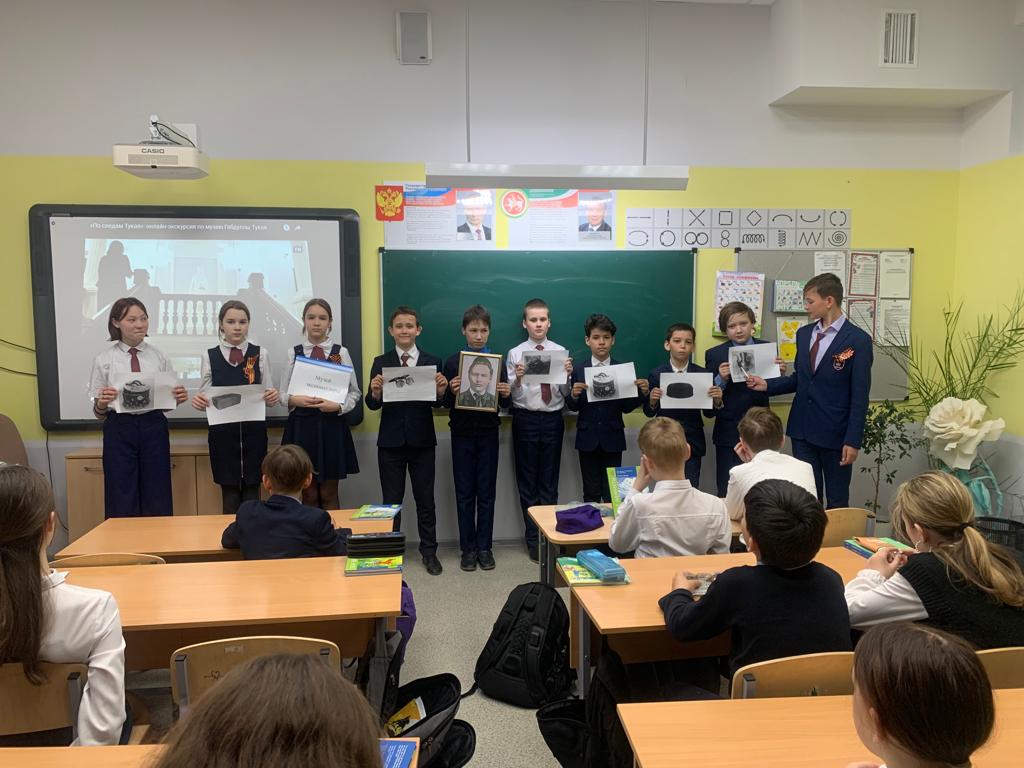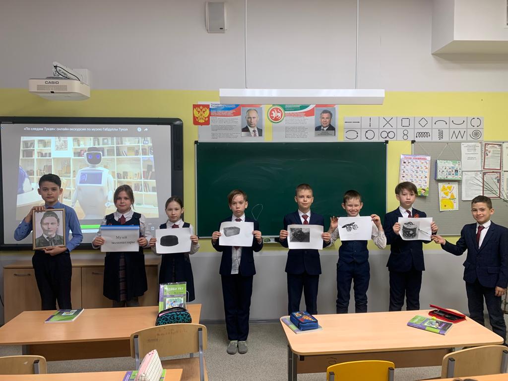 4А,5А,6 класс укучылары белән Г.Тукайның Казандагы музеена вертуаль сәяхәт оештырылды.Балалар үзләрен музей эчендә йөргән кебек хис иттеләр. Балаларны бигрәк шагыйрьнең мемориаль әйберләре: юл кәрзине, көмеш йозаклар, Тукай тарафыннан Петербургта 1912 елда сатып алынган карандашлар өчен металл стакан, шкатулка һәм әнисенең комганы бик кызыксындырды. Соңыннан без балалар белән “Музей экспонатлары” дигән альбом төзедек.