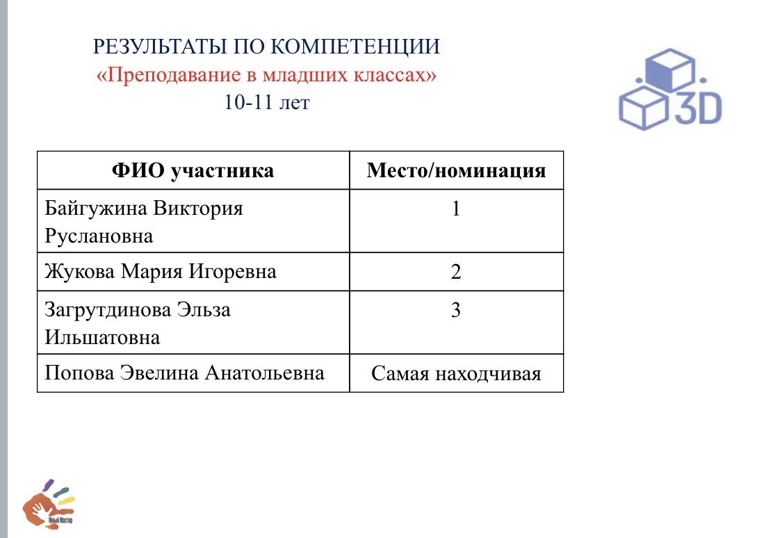 Ученица нашей школы Байгужина Виктория стала ПОБЕДИТЕЛЕМ в компетенции «Преподавание в младших классах» (10-11 лет), преподаватель Шайхутдинова М.Г.