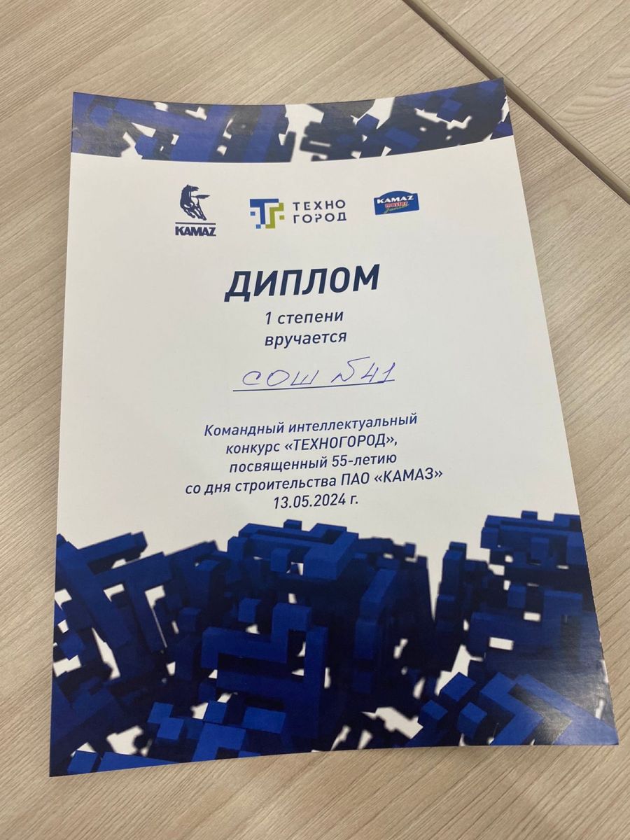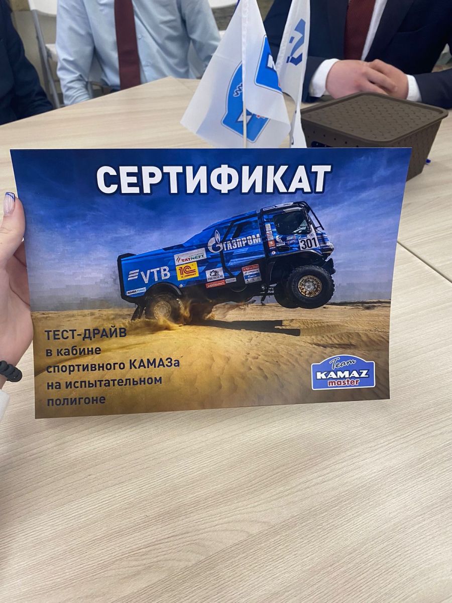 Главный приз в нашей школе! Поздравляем команду 10А класса и Эльмиру Гаптрашитовну с победой в командном интеллектуальном конкурсе «ТЕХНОГОРОД», посвящённый 55-летию со дня строительства ПАО «КАМАЗ»! А какой приз!!! Их ждёт тест-драйв в кабине спортивного КАМАЗа на испытательном полигоне!