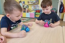 Воспитатель Татьяна Валентиновна провела очередное занятие по сенсорике с ребятами 12 группы на тему "Забавные иголки". -