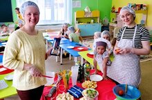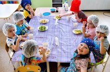 Хочется, чтобы каждый день приносил только радость. А что нужно человеку, чтобы быть всегда в хорошем настроении и в хорошей форме? Конечно же, здоровье. Здоровое мировосприятие формируется в самом раннем возрасте. Полезное питание – это основа здорового образа жизни, и чем раньше малыш усвоит азы, тем лучше. Уже в 2-3 года дети с удовольствием помогают накрыть на стол и убрать посуду, а в 4 года начинают готовить — могут почистить бананы, помыть фрукты или овощи, перемешать ингредиенты или собрать бутерброды. Начиная творить на кухне, ребёнок приобретает полезные навыки, у него появляется чувство ответственности и собственной значимости. С большим восторгом малыши 9 группы помогали готовить взрослым коктейль из свежих фруктов и ягод. Заливистый смех малышей, удивление и радость стали дополнительными добрыми "ингредиентами" получившихся вкуснейших коктейлей. Праздник удался!