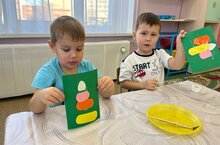 - Методика проведения занятия: рассмотреть с детьми пирамидку, уточнить форму, величину её частей. Вместе с ребятами определить последовательность наклеивания. В процессе работы направлять их действия, задавая вопросы о порядке наклеивания. Обращать внимание детей на необходимость использования правильных приемов наклеивания. Все получившиеся пирамидки рассмотреть, предложить детям назвать их цвета. Выделить самые красивые работы.