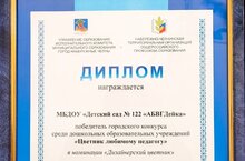 По итогам городского конкурса среди дошкольных образовательных учреждений "Цветник любимому педагогу" в номинации "Дизайнерский цветник" наш детский сад "АБВГДейка" одержал победу и награждён дипломом от лица организаторов конкурса - Управления образования Исполнительного комитета муниципального образования город Набережные Челны и Набережно-Челнинской территориальной организации Общероссийского Профсоюза образования. Благодаря стараниям наших сотрудников и уходу за растениями с любовью и заботой, наши клумбы и цветники весной и летом радуют глаз своим буйством цветения и невероятным благоуханием, делают территорию детского сада красивой, ухоженной и привлекательной, приносят детям и взрослым радость и эстетическое удовольствие. Эта награда - высокая оценка созидательного труда наших коллег и свидетельство признания их заслуг на муниципальном уровне.