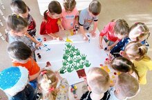 Ежегодно 8 декабря во всём мире отмечают Международный день художника, который был учреждён в 2007 году международной ассоциацией «Искусство народов мира». День художника — не только праздник профессионалов, но и любителей живописи. Творчество сохраняет в человеке возможность радоваться миру и любить его. Быть художником - это состояние души, способ самовыражения и потребность поделиться с окружающим миром своими эмоциями. Поэтому этот праздник – для всех любителей прекрасного. Знакомство с изобразительным искусством позволяет не только расширить знания и кругозор, но и приобщиться к этому замечательному миру. Именно дети - истинные ценители этого занятия. Не проходит и дня, чтобы наши маленькие художники не создали очередной шедевр. Педагоги нашего детского сада ежедневно знакомят дошколят с различными техниками рисования, учат делать коллажи и аппликации из всевозможных материалов, а также лепить и моделировать. В этот замечательный день в группе 10 после познавательных бесед о великих художниках и их произведениях искусства дети вместе с воспитателем Сергеевой Натальей Сергеевной создали всеобщий рисунок в честь главных символов Нового года.