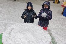Несмотря на то, что календарная зима ещё не наступила, погода стоит по-настоящему зимняя. Особенно рады дети - они бегают по белому снегу, лепят снежки, строят снежные города и лабиринты. Всем очень весело!