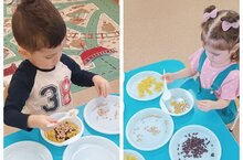 В 3 группе малыши под руководством воспитателя Алсу Абдурашидовны поиграли в игру Золушка (Сортировка круп). -
