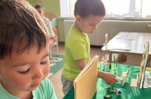 В 7 группе у детей прошла подгрупповая работа с ножницами «Парикмахерская» с воспитателем Айгуль Занифовной. Цель: Учить детей действовать ножницами, правильно держать их, сжимать и разжимать кольца. -