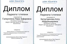 Поздравляем наши педагогов - воспитателей Лиру Зуфаровну и Алсу Абдурашидовну - с дипломами лауреатов I степени и с заслуженным званием победителей Всероссийского тестирования для педагогов "Развитие коммуникативных способностей у дошкольников". Гордимся нашими коллегами! Так держать!