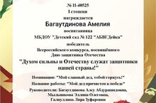 23 февраля - День защитника Отечества. Этот день - дань уважения всем поколениям героического воинства нашей страны. Издавна в России профессия военного была одной из самых уважаемых и почётных. Ведь служить Отечеству - значит оберегать мирную жизнь народа, хранить честь и достоинство Родины. Современный День защитника Отечества не ограничивается поздравлением только военных. Сегодня этот праздник считают своим все, кто имеет любое отношение к защите страны или своей семьи. Это праздник доблести, мужества, чести и любви к Родине. В соответствии с единым календарём массовых и методических мероприятий на 2024 - 2025 гг. Центром гражданских и молодёжных инициатив «Идея» г. Оренбурга был проведён Всероссийский конкурс, посвящённый Дню защитника Отечества «Духом сильны и Отечеству служат защитники нашей страны!». В данном конкурсе приняли участие наши воспитанники - Багаутдинова Амелия и Гарипов Азамат. По итогам конкурса наши дети стали победителями и обладателями диплома 1 степени. Поздравляем ребят и их творческих наставников - воспитателей Алсу Абдурашидовну, Эллину Олеговну, Лиру Зуфаровну - с успехом! Гордимся достижениями! Желаем новых ярких побед и свершений!