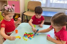 В 5 группе дети увлеченно играют с сортером "Стаканчики" с воспитателем Ильвирой Ильдусовной. -